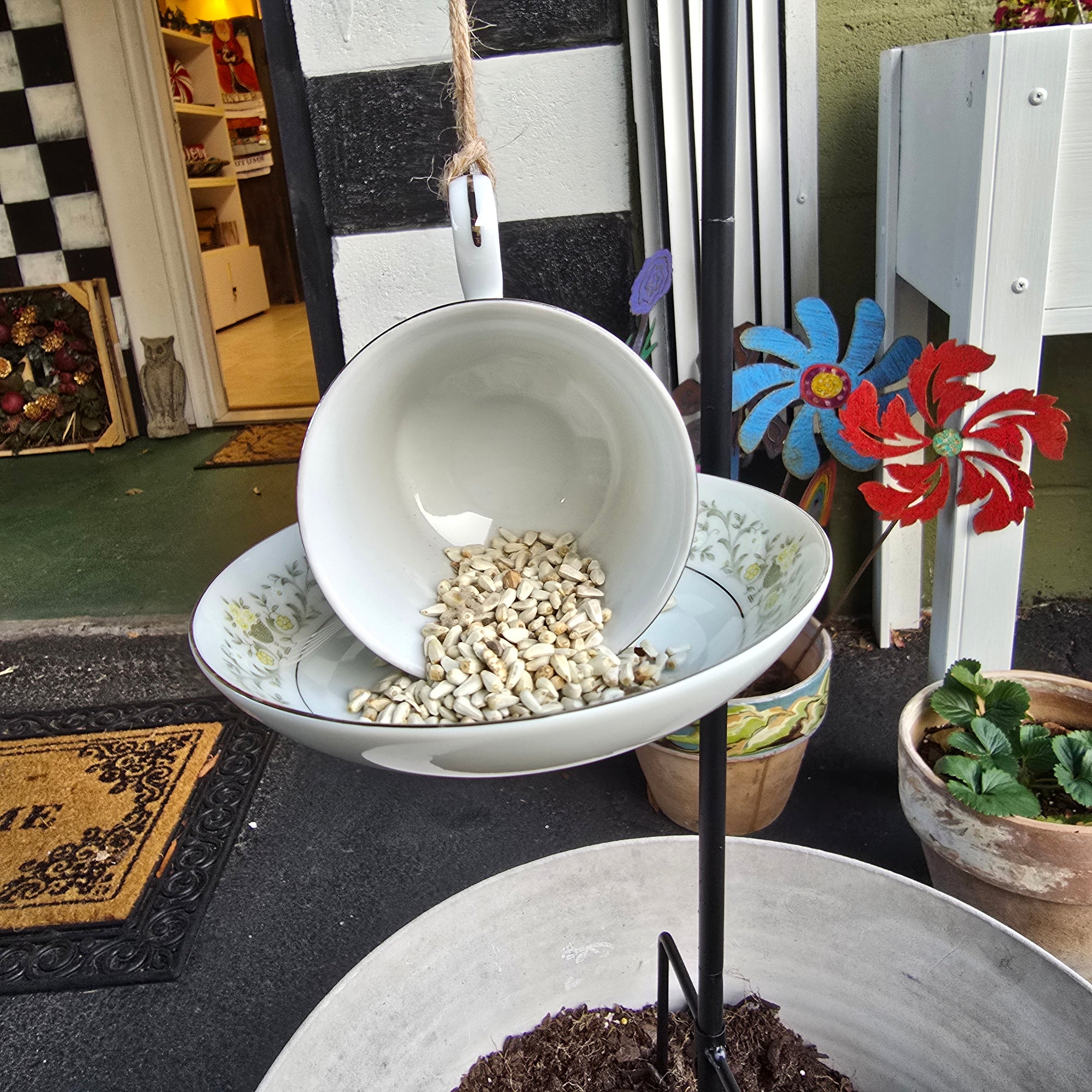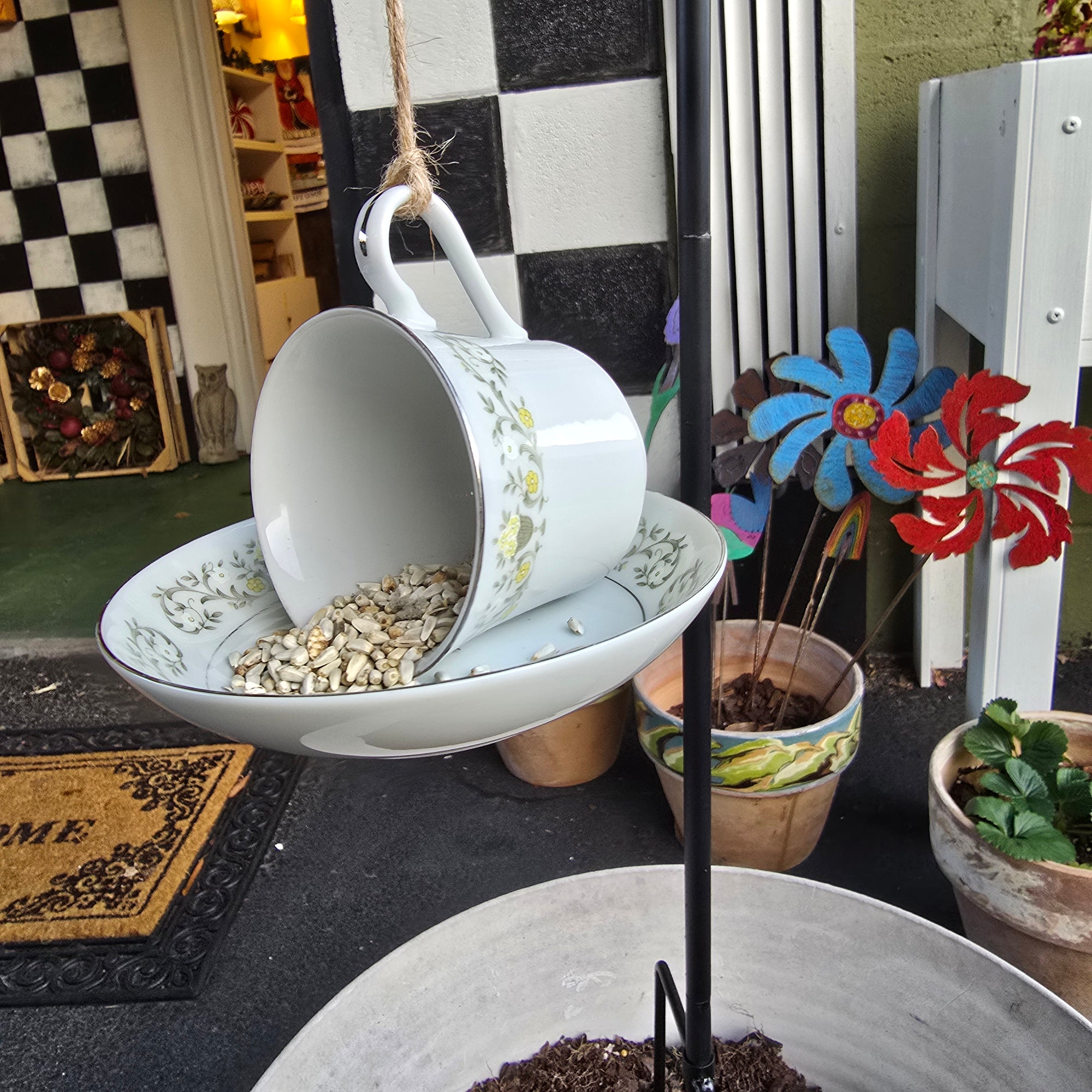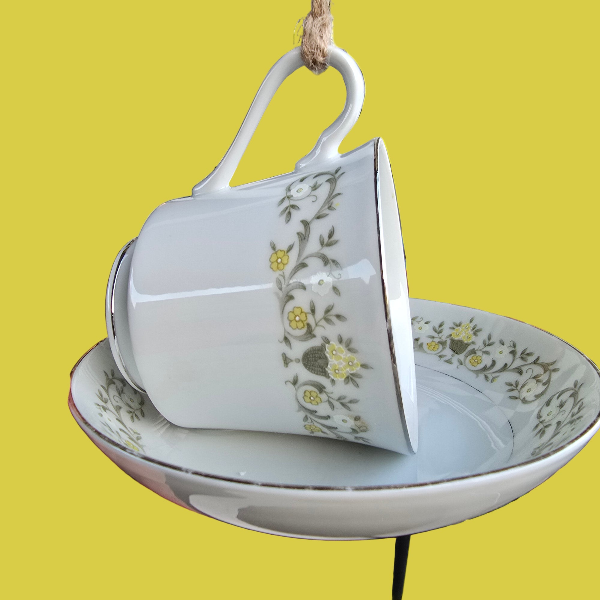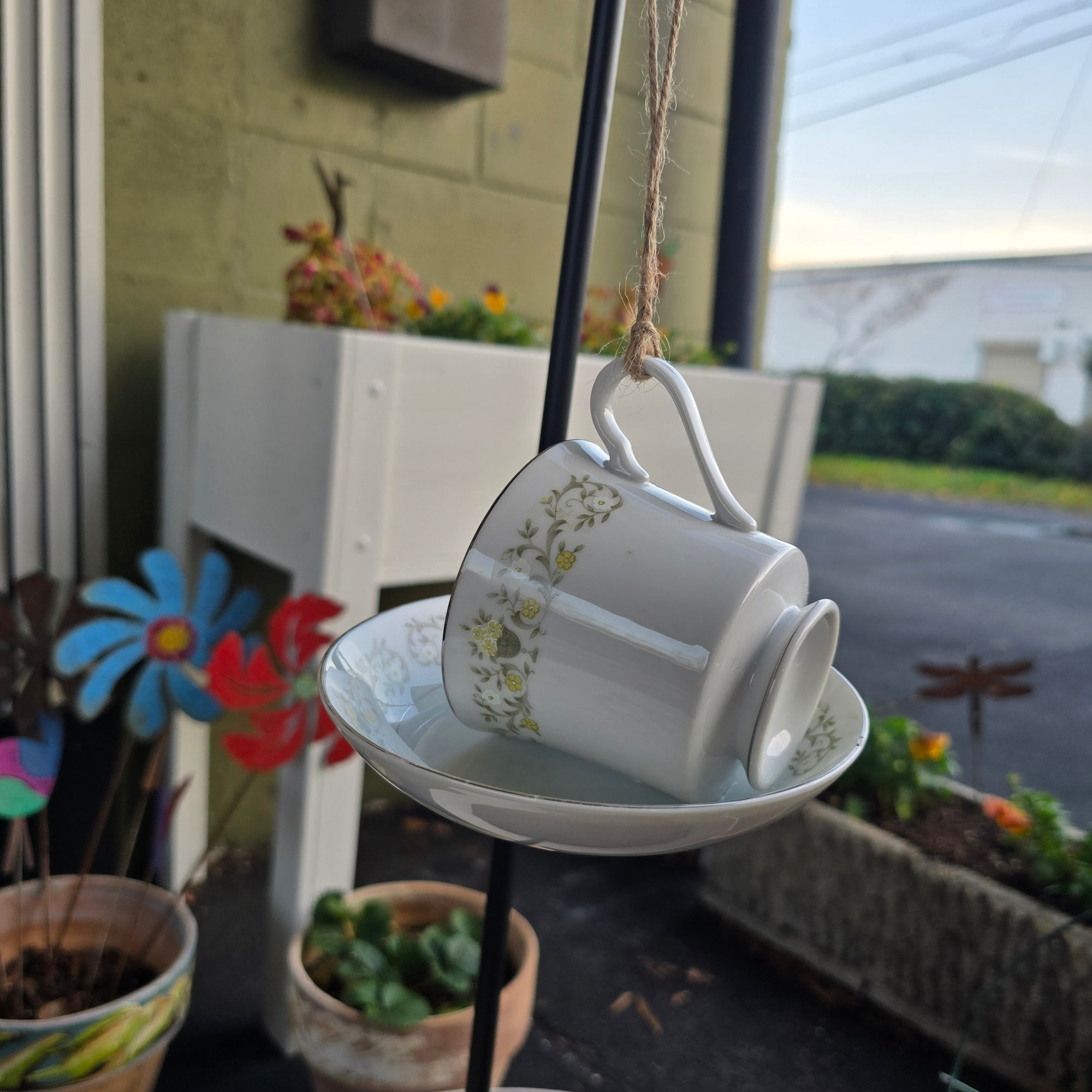 Teacup Bird Feeder - White/Yellow Flower Vine