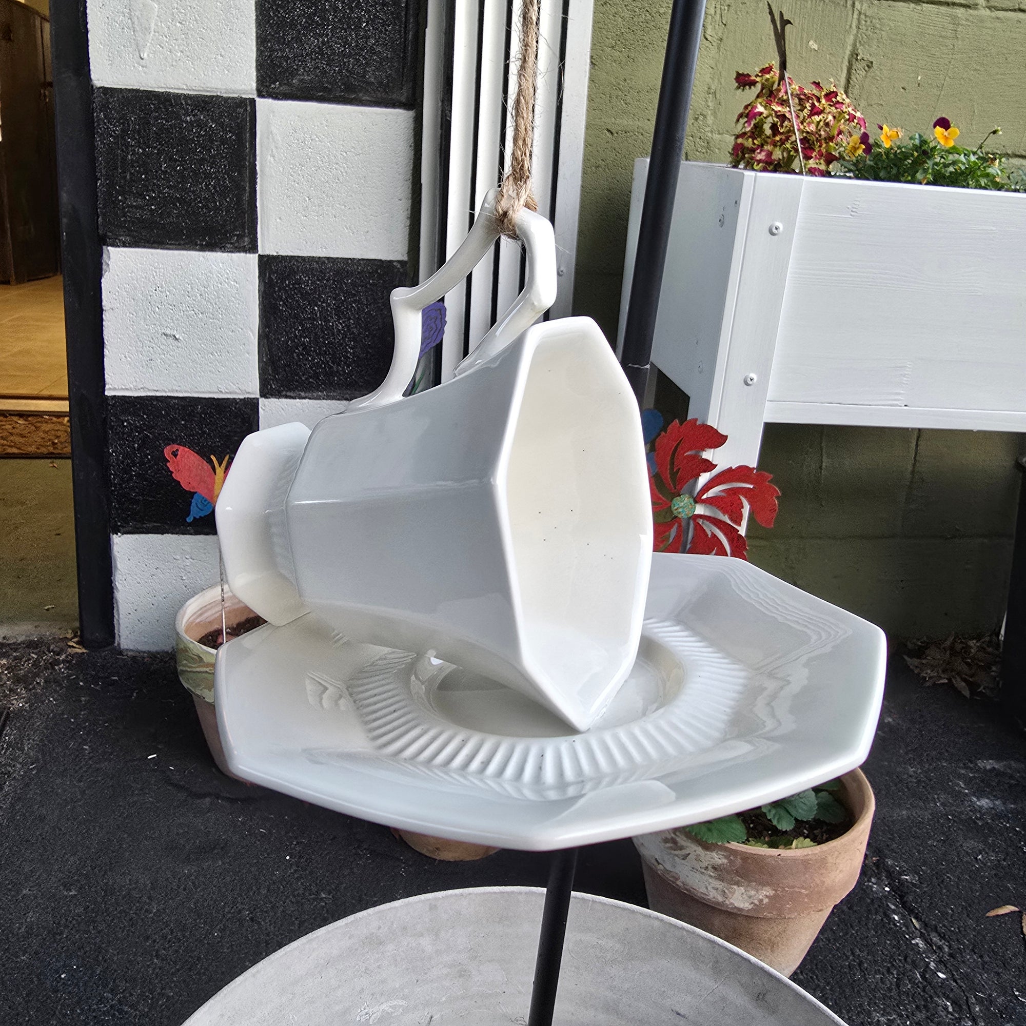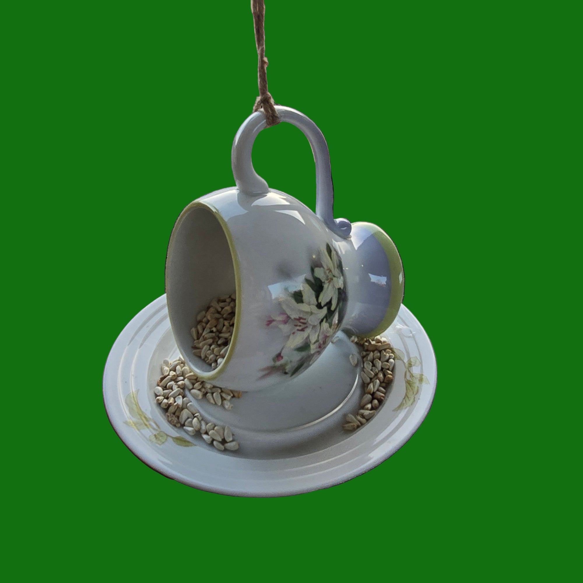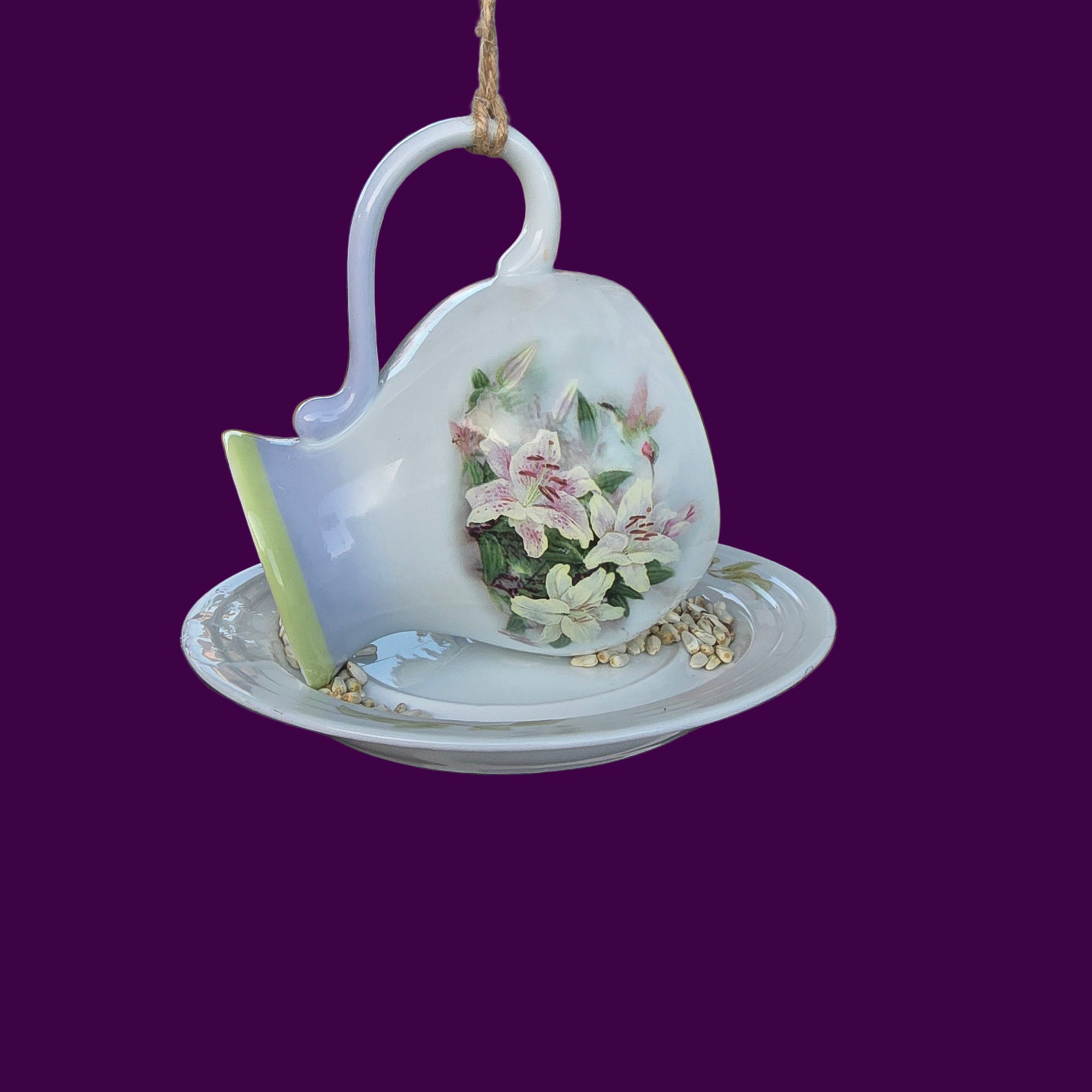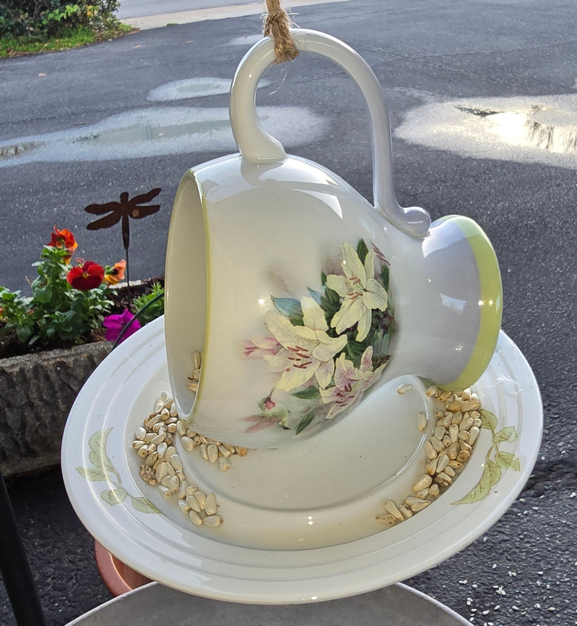 Teacup Bird Feeder - White/Yellow Flower Vine