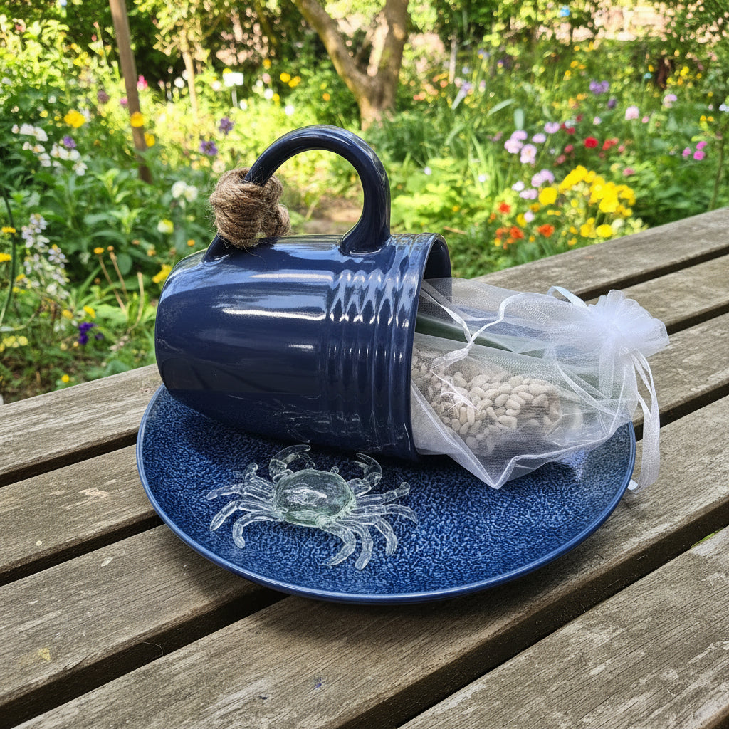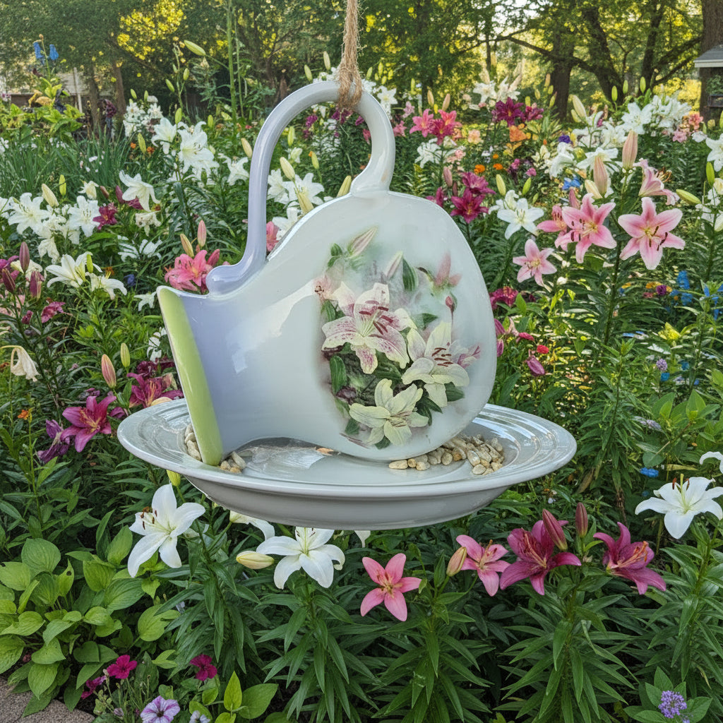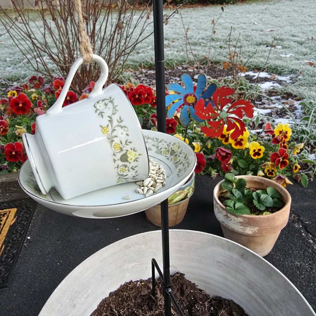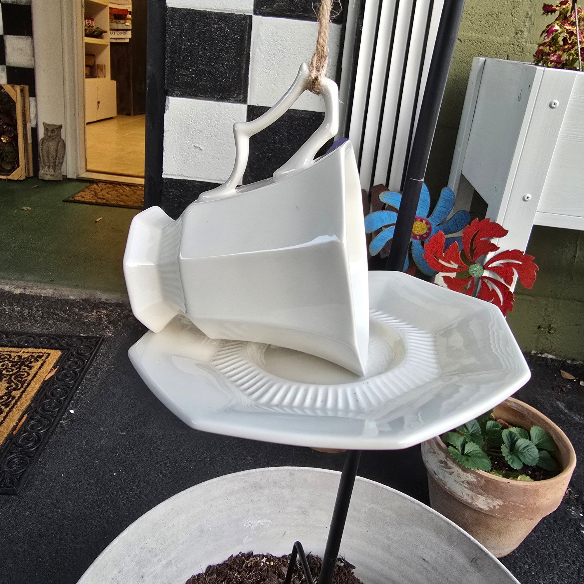 Teacup Bird Feeder - White/Yellow Flower Vine