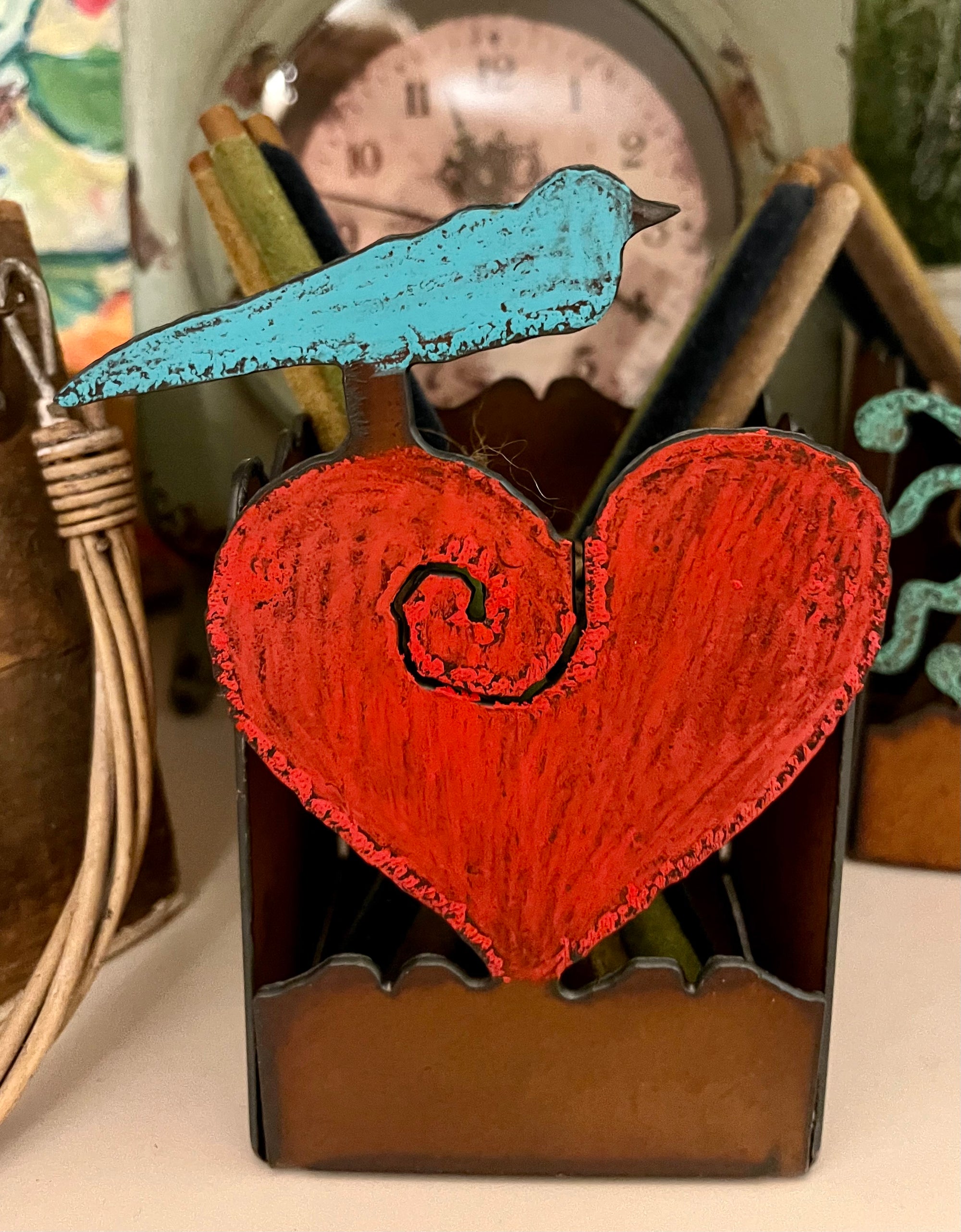 Metal Card Holder Wreath with Two Birds