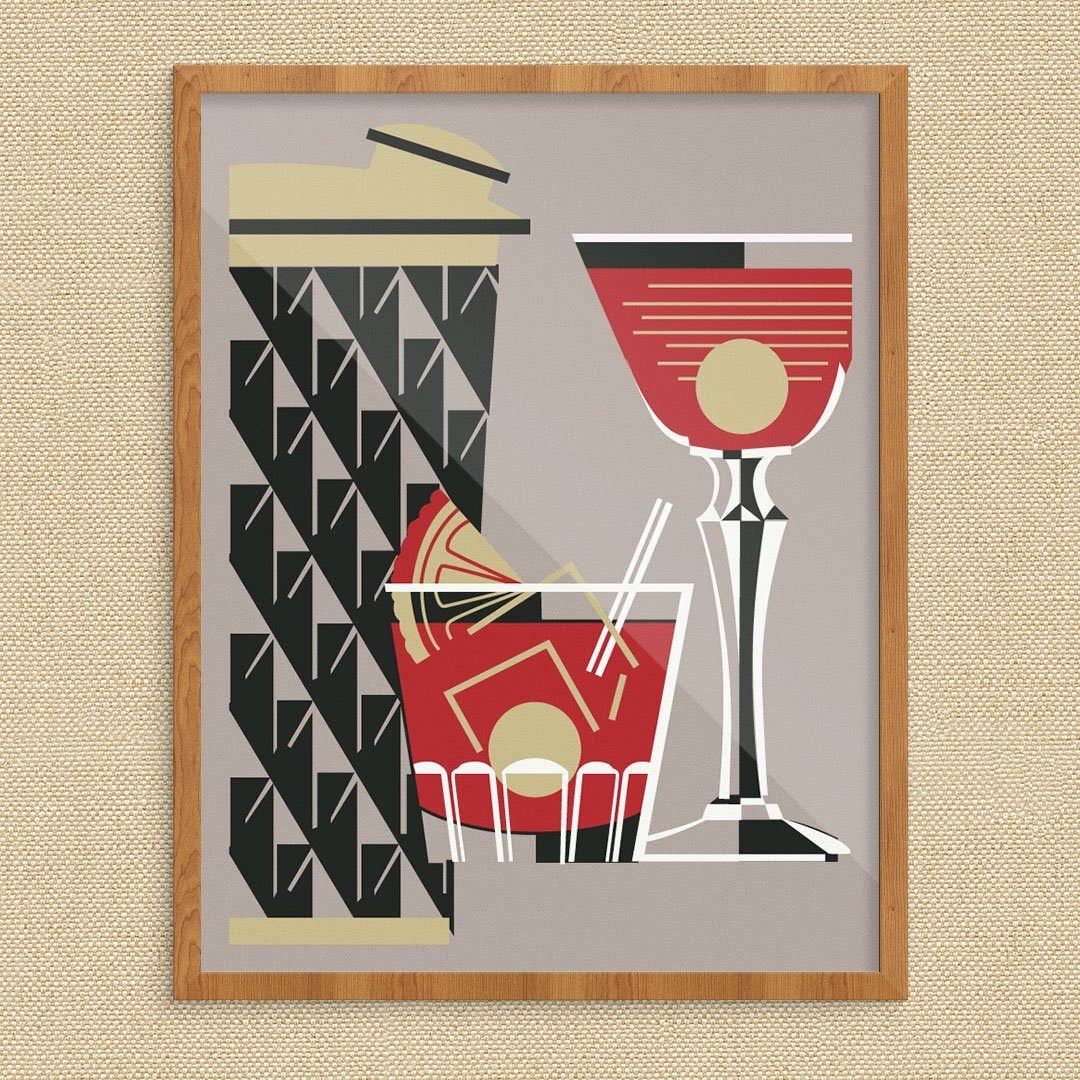 Mid-Mod Print - Rocks Glass, Martini & Cocktail Vintage Print