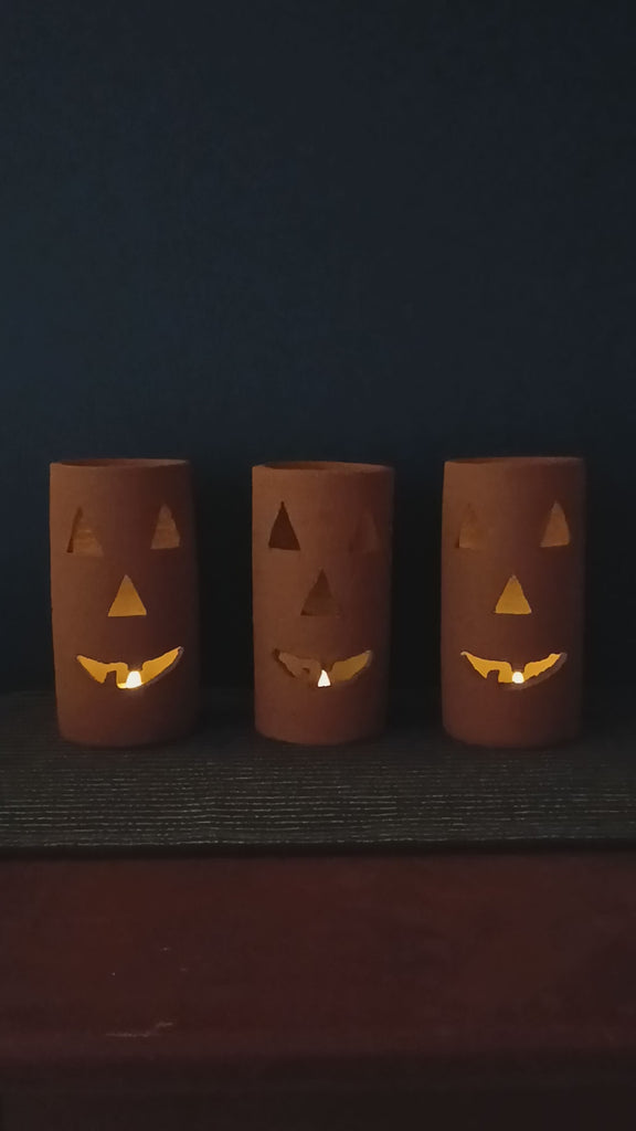 Terra Cotta Jack O' Lantern Votive Candle Holders - Tall